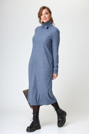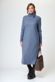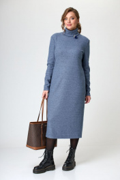Платье-силуэт трикотажное (с добавлением шерсти) длины midi. По горловине плотный воротник «гольф» с отворотом . Рукав длинный. Декоративная брошь «Play Boy» украшает платье. Длина 120 см Длина рукава 62 см.
