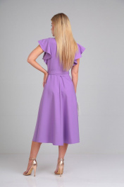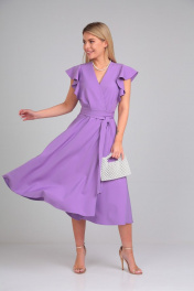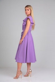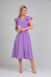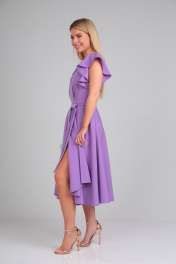 Элегантное соблазнительное платье из непрозрачной ткани, отрезное по талии. Застегивается на две потайные кнопки с глубоким запахом. По спинке средний шов. Плечо прикрывает волан. Юбка «полусолнце» распахивается по переду. Пояс съемный длинный. Длина 110 см ( юбка от талии 75 см, лиф по спинке 35 см)