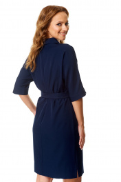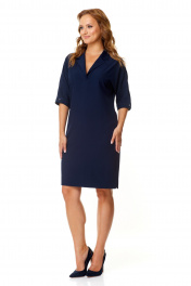 Деловое платье прямого силуэта с воротником и разрезами T&N 7565 темный_синий