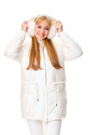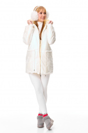 Комплект зимний из куртки из плащёвки и трикотажа T&N 7596 молочный_перламутр/топленое_молоко