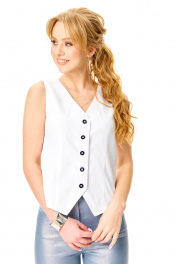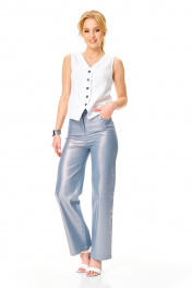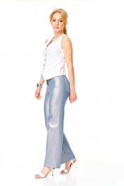 Стильный брючный комплект в невероятном цветовом сочетании состоит из классического белого жилета и брюк из блестящего джинса. Жилет из плотного хлопка полуприлегающего силуэта с глубоким вырезом. Застежка на петли-пуговицы по подборту. Жилет без подкладки. Длина по спинке 47 см Брюки из эластичного джинса с блеском. С высокой посадкой на талии, облегающие бедра и немного прямые к низу. С карманами по переду и задним половинкам, по поясу спинки -резинка. Застежка молния по переду и пуговица по поясу. Длина брюк 102 см (без пояса). Окружность по талии (резинка не растянута) размер 42-62-66 см 44-66-72 см 46-70-78 см 48-74-82 см 50-78-86 см Окружность по бедрам размер 42-92 см 44-96 см 46-100 см 48-104 см 50- 108 см
