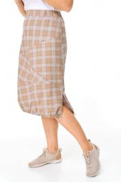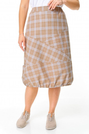 Юбка из плотного хлопка в клетку в стиле «спорт-шик» в «английском» цветовом сочетании голубой с бежевым полуприлегающего силуэта по низу расширена и собрана на «стяжке». Направление клетки «антисимметрия». Застежка по спинке на «потайную» молнию. Пояс притачной с резинкой по бочкам. Карман с боку ниже бедра. С одной стороны разрез. Юбка без подкладки. Длина юбки: 72 см Окружность по талии : размер 46-68-78 см размер 48-72-82 см размер 50-76-86 см размер 52-80-90 см размер 54-84-94 см Объем по бедрам: размер 46-102 см размер 48-106 см размер 50-110 см размер 52-114 см размер 54-116 см
