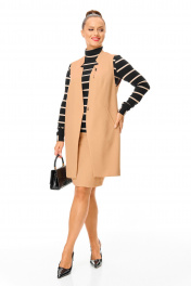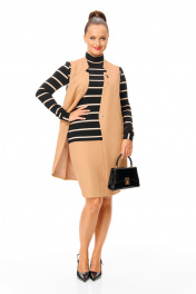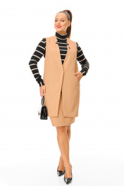 Водолазка, жилет, юбка T&N 7703 бежевый-черный