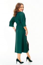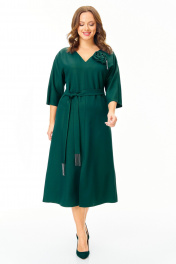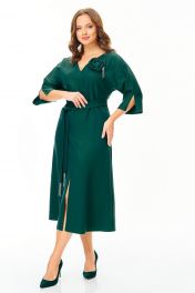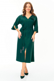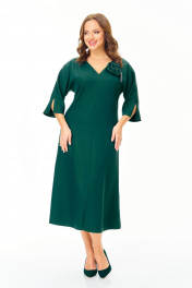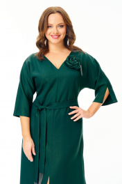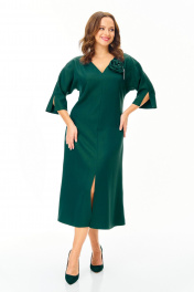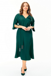 Нарядное элегантное платье из плотной ткани с легким блеском. Украшено съемным цветком. Полуприлегающего силуэта с небольшим расклешением к низу. Горловина V-образной формы. Застежка молния по спинке. Рукав цельнокроеный с разрезом. По переду невысокий соблазнительный разрез. Пояс съемный. Платье без подкладки. Длина платья 115 см Длина рукава от горловины 43 см Обхват по груди размер 48-100 см 50-104 см 52-108 см 54-112 см 56-116 см Обхват по талии 48-94 см 50-98 см 52-102 см 54-106 см 56-110 см