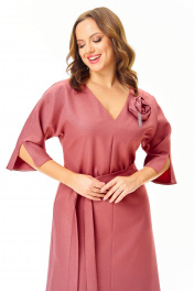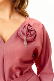 Нарядное элегантное платье из плотной ткани с легким блеском. Украшено съемным цветком. Полуприлегающего силуэта с небольшим расклешением к низу. Горловина V-образной формы. Застежка молния по спинке. Рукав цельнокроеный с разрезом. По переду невысокий соблазнительный разрез. Пояс съемный. Платье без подкладки. Длина платья 115 см Длина рукава от горловины 43 см Обхват по груди размер 48-100 см 50-104 см 52-108 см 54-112 см 56-116 см Обхват по талии 48-94 см 50-98 см 52-102 см 54-106 см 56-110 см