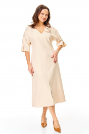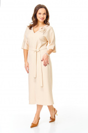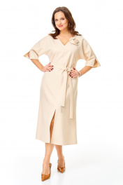 Нарядное элегантное платье из плотной ткани с легким блеском. Украшено съемным цветком. Полуприлегающего силуэта с небольшим расклешением к низу. Горловина V-образной формы. Застежка молния по спинке. Рукав цельнокроеный с разрезом. По переду невысокий соблазнительный разрез. Пояс съемный. Платье без подкладки. Длина платья 115 см Длина рукава от горловины 43 см Обхват по груди размер 48-100 см 50-104 см 52-108 см 54-112 см 56-116 см Обхват по талии 48-94 см 50-98 см 52-102 см 54-106 см 56-110 см