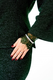 Джемпер из однотонного трикотажного полотна с блеском «люрекс». Горловина цельная «стойка». Плечо спущено. Рукав 3/4. По переду притален складками. Спинка длиннее переда. Съемные кружевные манжеты добавляют страсти образу. Стильная булавка убережет от сглаза. Длина 57-60 см Длина рукава с плечом 62-65 см Объем по груди размер 46-96 см 48-100 см 50-105 см 52-109 см 54-113 см 56-117 см Объем по талии 46-84см 48-88 см 50-91 см 52-95 см 54-102 см 56-106 см Трикотаж мягкий, хорошо растяжимый, легкий, не колючий!