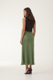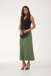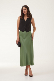 Юбка женская, полуприлегающего силуэта, выполнена из струящегося полотна, длиной макси. Юбка без застежки. Юбка без подкладки. Длина по боковому шву 93 см.