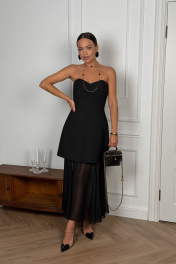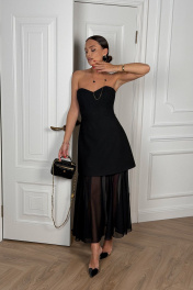 Абсолютный тренд сезона - длинная прозрачная юбка. Юбка силуэта годэ, расширена к низу. Верх юбки присобран на резинку. Носите юбку как прозрачный слой с мини-платьями или шортами, создавая эффект многослойности, который сейчас на пике популярности. Для создания street-style образа сочетайте юбку с удлиненным, плотным верхом (например, с объемным свитшотом оверсайз), чтобы добиться модного контраста фактур. И, конечно, такая юбка станет идеальным нарядом для вечернего выхода. На фото с платьем М242. Промеры в 44 размере: длина по боковому шву - 96 см ПОТ - 33 см ПОТ с растянутой ре