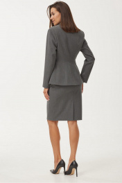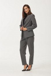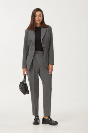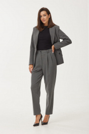 Жакет женский прилегающего силуэта, выполненный из костюмной ткани. Жакет с отрезной талией. Застежка однобортная на одну петлю и пуговицу. Воротник пиджачный с лацканами. Карманы прорезные по косой линии, с клапанами. Рукава втачные длинные. Спинка со средним швом и талиевыми вытачками. Длина изделия по спинке до шва 39 см, длина баски 25 см, длина рукава 62 см. Жакет составит стильный образ с юбкой М319.
