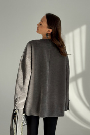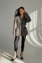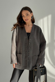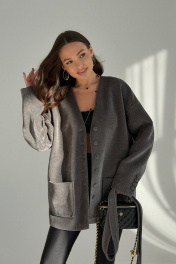 Элегантный комфортный жакет (кардиган), который легко стилизовать как в деловом, так и в повседневном стиле. Женский кардиган прямого силуэта выполнен из плотной трикотажной ткани в широкий рубчик, что придает ему фактурности и мягкости. Вырез горловины V-образный, без воротника. Застежка центральная на петли и пуговицы. По полочке на уровне бедер накладные карманы. Линия плеча спущена. Рукава длинные втачные двух шовные со шлицей на пуговицах снизу. Спинка прямая со средним швом. В комплекте идет пояс из основной ткани, который позволяет моментально изменить образ: носите кардиган свободно или подчеркните талию для более женственного силуэта. Благодаря поливискозной подкладке, кардиган прекрасно держит форму и обеспечивает максимальный комфорт. Промеры в 44 размере: длина по спинке - 74 см длина рукава от горловины - 77 см ПОГ - 58 см ПОТ - 60 ПОБ - 60 см