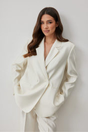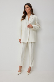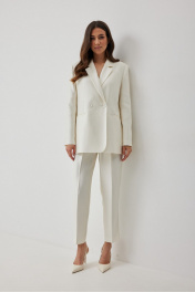Стильный женский жакет прямого силуэта, выполнен из ткани «люмина» с блеском, что придает изделию нарядный вид. Жакет полностью на поливискозной подкладке. Классический V-образный вырез горловины с пиджачным воротником и лацканами. Застежка двубортная на петли и пуговицы. На уровне бёдер расположены прорезные карманы с листочками. Рукава втачные длинные, с шлицей по низу. Спинка со средним швом и шлицей снизу. Этот жакет станет эффектным акцентом в вашем вечернем гардеробе. Для создания идеального образа комбинируйте с брюками М381.