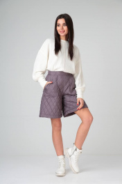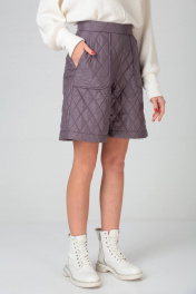 Шорты женские выполнены из стёганой плащёвой ткани на утеплителе(isosoft). На притачном поясе с застёжкой на кнопку; с высокой посадкой; накладные карманы со скошенным входом; расширены книзу от линии бедра; застёжка - потайная молния в боковом шве. Шорты полностью на трикотажной подкладке, зафиксированной по краю изделия. Длина изделия – 48 см