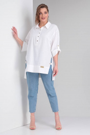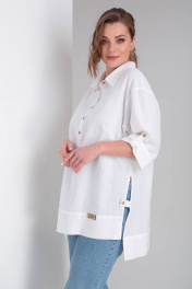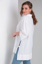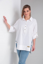 Туника женская рубашечного покроя, свободного силуэта оверсайз, выполнена из тонкого льна. Воротник отложной рубашечный на стойке. От воротника по центру не доходя до линии талии - притачная планка с петлями и пуговицами. По переду нагрудная вытачка, идущая от линии талии. Линия плеча спущена. Рукав втачной с квадратной проймой, с манжетой и патой. По бокам глубокие разрезы, которые фиксируются патой с пуговицей. Линия низа оформлена широким манжетом. Спинка длиннее переда на 8см. Состав: лен 100% Длина спинки во всех размерах 81 см Ширина изделия на уровне глубины проймы в 46р - 60см , 48р-62см , 50р-64см, 52р-66см. Длина рукава с плечом 56см. Ширина рукава 27 см.