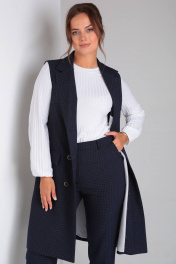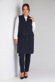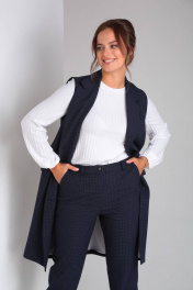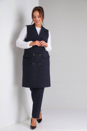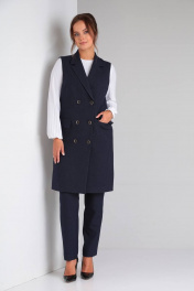 Стильный деловой комплект блуза, брюки и жилет из текстиля TVIN 7646 синий