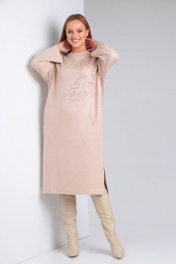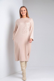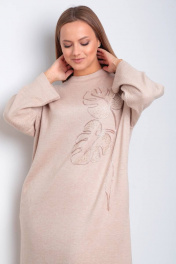Платье из трикотажа с вышивкой и карманами TVIN 7668 беж