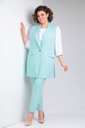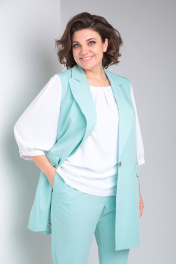 Классический деловой комплект из блузки, брюк и жилета TVIN 7689 мята