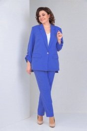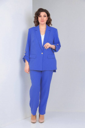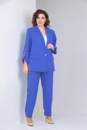 Комплект из жакета, брюк и майки из текстиля для делового образа TVIN 7702 василек