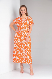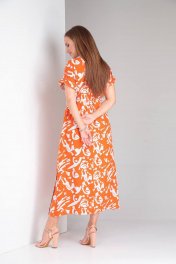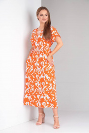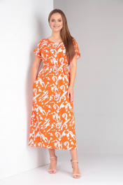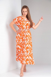 Платье свободного кроя из вискозы с поясом TVIN 7733 оранж