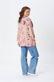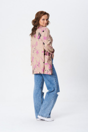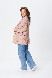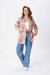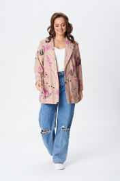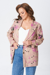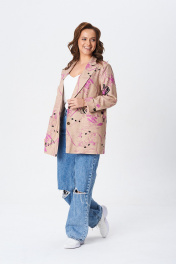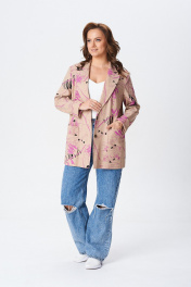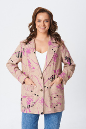 Жакет женский свободного покроя без подкладки. По переду центральная застежка на петли и пуговицы, воротник с лацканом пиджачного типа, вертикальный рельеф от проймы, нагрудная вытачка от горизонтального подреза ниже уровня линии талии, накладные функциональные карманы. Спинка со средним швом. Рукав втачной двухшовный длинный с отворотом по низу. Жакет выполнен из натуральной ткани с принтом, эластан в составе дает изделию дополнительный комфорт. Длина жакета по спинке 74 см. Ширина изделия на уровне глубины проймы в 48р 55 см, в 50р 57 см, в 52р 59 см, в 54р 61 см. Длина рукава 60 см. Ширина изделия на уровне линии талии в 48р 54 см, в 50р 56 см, в 52р 58 см, в 54р 60 см. Ширина изделия на уровне линии бедер в 48р 59 см, в 50р 61 см, в 52р 63 см, в 54р 65 см.