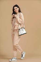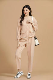 Стильный костюм на каждый день, который отлично подойдет для весенне-летнего сезона. Костюм от белорусского производителя станет любимой вещью в Вашем гардеробе. Независимо от того, с какой обувью Вы наденете этот комплект, Вы будете чувствовать себя комфортно. Спортивный пиджак и элегантные брюки можно носить вместе либо комбинировать с другими предметами одежды. Дополнить дизайнерскую модель прет-а-порте можно стильными аксессуарами.