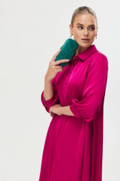 В свободном платье в сочном оттенке фуксия будет легко и комфортно в жаркую погоду. Подкладка выполнена из 100% вискозы. Платье не будет сковывать движений и подойдет, как для повседневного использования, так и для торжественных мероприятий. Платье из жатой ткани, приятной на ощупь - визитная карточка бренда Твой Имидж. Свободный крой, рукав 3/4, пуговицы в воротниковой зоне - все конструктивные элементы продуманы для Вашего комфорта. Модель украшена небольшими воланами по подолу.