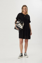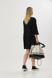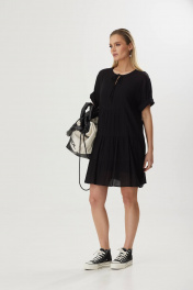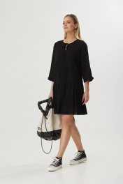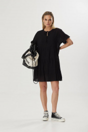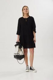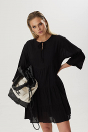 Платье свободного силуэта из хлопка с воланами и завязкой Твой имидж 1856 черный
