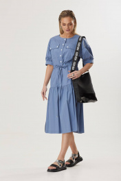 Миди платье А-силуэта с карманами из текстиля Твой имидж 1859 голубой