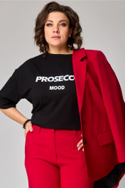 Жакет, брюки - вискоза 87%, полиэстер 13%. Подкладка - вискоза 95%, эластан 5%. Футболка - 95% хлопок, 5% эластан.