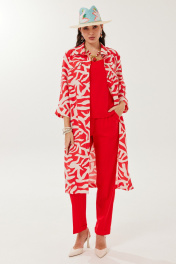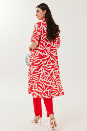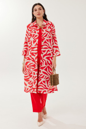 Костюм женский 3-х предметный, состоящий из блузы, брюк и топа. Брюки и топ выполнены из поливискозы с добавлением льна. Блуза - из поливискозы. Брюки классической формы, слегка заужены к низу со стрелками по передним и задним половинкам. Но низу брюк манжета. Верхний срез обработан притачным поясом на резинке. По центру переда - застёжка-обманка, по поясу брюк обработаны петли, из которых выходит шнур для регулировки талии. В боковых швах расположены наклонные карманы. Блуза прямого силуэта, длиной мидакси, с центральной застёжкой на петли и пуговицы. По переду расположены нагрудные выточки. Горловина обработана воротником рубашечного типа. Рукава регулируются по высоте при помощи паты, которая застёгивается на петлю и пуговицу. В нижней части боковых швов обработаны разрезы. Топ на широких бретелях, прямого силуэта. Туника с брюками - это стильное сочетание, которое позволяет создать элегантный и удобный образ. Такой наряд подходит для различных мероприятий и повседневной носки. В 50 размере ширина брюк по поясу - 37 см, ширина брюк по бедрам - 54 см, ширина топа по груди - 52 см, ширина туники по груди - 53 см. В 52 размере ширина брюк по поясу - 40 см, ширина брюк по бедрам - 56 см, ширина топа по груди - 54 см, ширина туники по груди - 55 см.