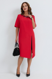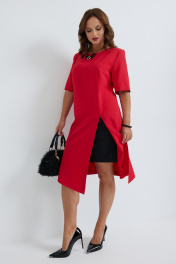 Эффектное платье прямого силуэта, выполненнное из поливискозы двух цветов. Перед платья с круглой горловиной и нагрудными вытачками. Перед платья в области бедра с косым подрезом. Нижняя часть переда состоит из верхней и нижней юбки. Верхняя юбка с косым низом и разрезом. Нижняя юбка из ткани контрастного цвета, имитирующая вторую юбку. Спинка с потайной молнией в среднем шве. Рукав втачной, длиной до линии локтя. В комплект к платью входит декоративная подвеска. Идеальное сочетание пикантности и элегантности от TVOI IMIDJ для тех, кто ценит стиль.