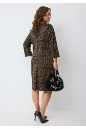 Платье полуприлегающего силуэта, длиной миди, со спущенной линией плеч, выполненное из поливискозного трикотажного полотна с анималистичным принтом. Перед с нагрудными вытачками и круглой формой горловины. Спинка с центральной складкой, имитирующей планку, с декоративными пуговицами. В верхней части спинки платья - декоративная вставка V-образной формы из двойной сетки. Рукав втачной одношовный длиной 3/4. Такое невероятно красивое и стильное праздничное платье прекрасно подойдет осенью и зимой для праздника, в ресторан, в офис, для вечеринки, для прогулки, для отдыха, для свадьбы, на каждый день для высоких и для невысоких девушек и женщин. В таком стильном наряде вы не останетесь незамеченной и будете в центре внимания!