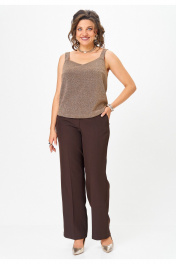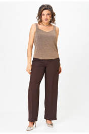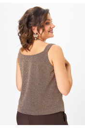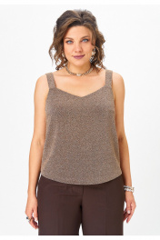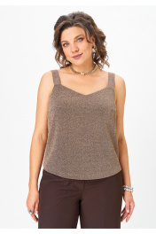 Топ прямого силуэта на широких бретелях, выполнен из трикотажного полотна с люрексом. Перед с нагрудными вытачками. Горловина переда лёгкой V-образной формы. Спинка цельнокроеная. Хотите выглядеть ярко и стильно на корпоративе или новогодней вечеринке? Тогда этот стильный топ идеально подойдет вам! Блестящий люрекс делает его по-настоящему эффектным и привлекательным.