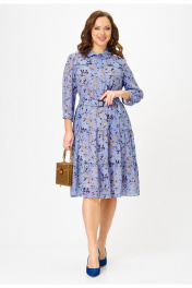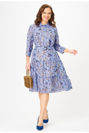 Платье полуприлегающего силуэта, от линии бедер расширенное к низу, выполненное из шифона, на подкладке. В верхней части переда платья - нагрудные выточки, по центру - планка до линии талии, которая застёгивается на петли и пуговицы. В области груди расположены настрочные клапаны. Горловина платья обработана воротником со стойкой рубашечного типа. Нижняя часть платья состоит из воланов. В области талии - шлевки с декоративной тесьмой из основной ткани, спускающейся до середины юбки платья. Рукава короткие с манжетой, застегивающейся на пуговицу. В комплект входит пояс из основной ткани. Шифоновое платье с принтом - идеальный вариант для создания повседневного образа. К нему можно добавить кожаную куртку и яркие аксессуары, например, сумку или шляпу в контрастных тонах. В 48 размере ширина по груди - 53 см, ширина по талии - 51 см, ширина по бедрам - 57 см.