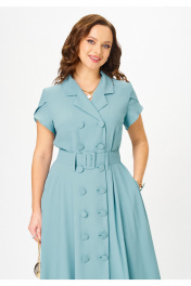 Платье А-силуэта длиной ""мидакси"", выполненое из струящейся плательной ткани, отрезное по линии талии. Перед с нагрудными вытачками и двухбортной застёжкой на петли и пуговицы. Горловина обработана воротником жакетного типа. Спинка лифа с кокеткой и встречной центральной складкой. Нижняя часть платья спинки цельнокроеная. По переду и спинке в области талии обработаны шлевки для пояса с пряжкой, который входит в комплект платья. Рукав втачной, короткий, формы ""тюльпан"", который удлиняется до линии локтя в зависимости от размера. В боковых швах платья обработаны карманы. Данная модель от TVOI IMIDJ идеально сочетает в себе комфорт и стиль. Приталенный фасон с расклешённым низом подчёркивает женственность и утончённость образа. Мятный цвет и универсальный стиль делают это платье идеальным выбором для летних прогулок, работы и праздничных мероприятий.