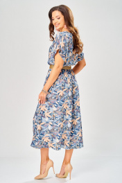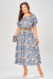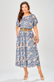 Платье женское полуприлегающего силуэта длиной мидакси. Платье с круглой горловиной и со спущенной линией плеча. Нижняя часть плеча, переходящая в цельнокроенный короткий рукав, обработана притачной манжетой. На верхней части переда платья обработаны нагрудные вытачки. Платье с центральной застёжкой на петли и натуральные пуговицы, на притачной планке, обработанной до линии талии. Верхняя часть спинки цельнокроенная. Нижняя часть переда и спинки цельнокроенные. В боковых швах, в области бедер обработаны карманы. По линии талии расположена эластичная резинка, регулирующая прилегание. В комплект к платью входит плетёный декоративный ремень. Легкое и стильное, это платье добавит изюминку в ваш летний образ. Растительный принт придает романтичности и свежести, подчеркивая вашу индивидуальность. Это платье изготовлено из высококачественной вискозы, что делает его невероятно приятным к телу.