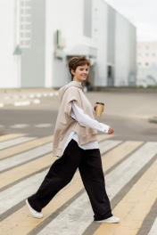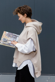 Комплект суперстильной дизайнерской Жилетки с капюшоном цвета латте из премиального турецкого хлопка с белой рубашкой из умягченного льна закрывает все базовые потребности - уместно на работе, стильно в кафе, удобно на прогулке. Уникальная выкройка обеспечивает идеальную посадку обладательницам размеров от 42 до 52 (ростом от 160 до 180 см). Ширина Жилетки 65 см, высокие боковые разрезы идеально повторяют разрезы рубашки. Длина передней планки 65 см, спинки 72 см. Двухсторонний капюшон красиво выкладывается вокруг горловины и, надетый на голову, не тянет, а красиво обрамляет лицо. Рубашка белая из умягченного льна 44-46: Длина передней планки рубашки 69 см, длина изделия по спинке 75 см. длина рукава от воротника 73 см. Полуобхват в области груди 58 см. Рубашка белая из умягченного льна 48-50: Длина передней планки рубашки 72 см, длина изделия по спинке 78 см. длина рукава от воротника 75 см. Полуобхват в области груди 61 см. Абсолютно универсальный комплект для любого гардероба и стиля. Уход за изделием: деликатная стирка с жидким моющим средством при температуре 30-40 градусов.