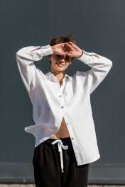 Белый жилет с капюшоном и льняная рубашка Twok 204225 латте-белый