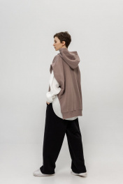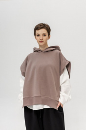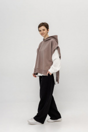 Комплект суперстильной дизайнерской Жилетки с капюшоном цвета какао из премиального турецкого хлопка с белой рубашкой из умягченного льна закрывает все базовые потребности - уместно на работе, стильно в кафе, удобно на прогулке. Уникальная выкройка обеспечивает идеальную посадку обладательницам размеров от 42 до 52 (ростом от 160 до 180 см). Ширина Жилетки 65 см, высокие боковые разрезы идеально повторяют разрезы рубашки. Длина передней планки 65 см, спинки 72 см. Двухсторонний капюшон красиво выкладывается вокруг горловины и, надетый на голову, не тянет, а красиво обрамляет лицо. Рубашка белая из умягченного льна 44-46: Длина передней планки рубашки 69 см, длина изделия по спинке 75 см. длина рукава от воротника 73 см. Полуобхват в области груди 58 см. Рубашка белая из умягченного льна 48-50: Длина передней планки рубашки 72 см, длина изделия по спинке 78 см. длина рукава от воротника 75 см. Полуобхват в области груди 61 см. Абсолютно универсальный комплект для любого гардероба и стиля. Уход за изделием: деликатная стирка с жидким моющим средством при температуре 30-40 градусов.