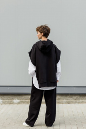 Черный жилет с капюшоном и белая льняная рубашка Twok 208225 черный_белый