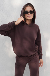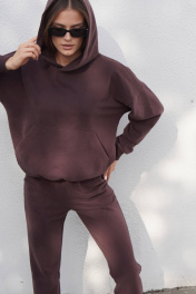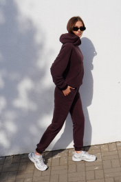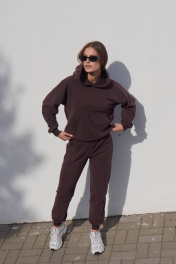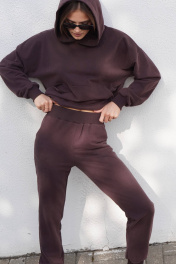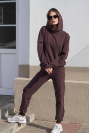 Коричневый костюм из футера с велюром, свитшот и брюки на манжете Twok 400819 шоколад