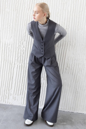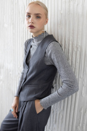 Летний классический жилет из костюмной ткани с V-образным вырезом ULLA 1G серый