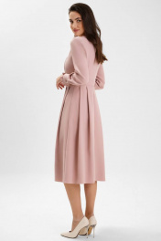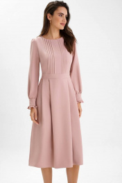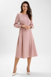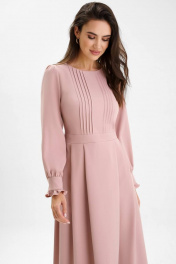 Лаконичный фасон и женственность – две важные особенности. Именно этими словами можно охарактеризовать это платье, которое будет актуально на любом мероприятии. Платье женское полуприлегающего силуэта из костюмно-плательной ткани, может быть как нарядным, так и для повседневной носки. Платье отрезное по линии талии, с притачным поясом. Верхняя часть переда (лиф) с защипами, идущими от горловины до шва притачивания пояса. Нижняя часть переда (юбка) с 2-я парами складок. Спинка со средним швом, в котором обработана застежка на потайную тесьму-молнию. Верхняя часть спинки с талиевыми вытачками, идущими от шва притачивания пояса. Нижняя часть спинки с 2-я парами складок. Рукава втачные, одношовные, длинные. По окату рукава имеется сборка. Низ рукава обработан притачной манжетой, застегивающейся на петлю и пуговицу, рукав по шву притачивания к манжете со сборкой. Манжета с закругленным углом. По нижней части манжеты - рюша. Горловина овальной формы, обработана обтачкой. Длина платья по среднему шву спинки – 115,0 см (±3,0 см), Длина рукава с манжетой – 61,0 см (±1,5 см). Тип ткани: костюмно-плательная. Состав: полиэстер – 71%, вискоза 23%, спандекс – 6%.