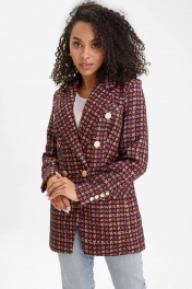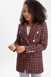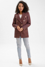 Универсальный и изящный жакет в стиле Шанель, это незаменимая вещь женского гардероба, поскольку, данная модель одежды весьма удачно дополняет образы разного стиля. Эта модель универсальная, она подойдет любой женщине, независимо от её возраста, предпочитаемого стиля одежды и телосложения. Жакет женский полуприлегающего силуэта из костюмной ткани, со смещенной двубортной застежкой на 2 петли и пуговицы, расположенные на уровне линии талии, остальные 4 пуговицы несут декоративную функцию (размер и цвет фурнитуры может незначительно отличаться от фото). Жакет со скошенным краем борта, на притачной подкладке. Перед жакета с рельефными швами отрезного цельнокроеного бочка идущими от проймы до низа и талиевыми вытачками идущими от центра груди до линии входа в карман. Жакет с прорезными карманами «в рамку» с клапаном, расположенным чуть ниже линии талии. Углы клапана - скруглены. В верхней части левой половинки переда обработан прорезной карман-обманка с листочкой. Спинка с рельефными швами отрезного цельнокроеного бочка и средним швом. В низу среднего шва расположена шлица. Отрезной бочок переда и спинки цельнокроеный. Рукава втачные двухшовные длинные. По низу локтевого шва обработана шлица, которая застегивается на 4 петли и пуговицы. Плечевой пояс оформлен при помощи плечевых накладок. Воротник пиджачного типа с отложными лацканами. Углы воротника прямые, лацкана - заостренные. Длина жакета по среднему шву спинки – 71,0 см (±2,0 см), Длина рукава жакета – 60,5 см (±1,0 см) Тип ткани: костюмная Состав: полиэстер - 48%, акрил - 30%, вискоза - 18%, металл - 4%. "44 размер Жакет Длина жакета по среднему шву спинки – 71,0 см (±2,0 см), Ширина жакета на уровне глубины проймы – 48,0 см (±1,0 см), Ширина жакета на уровне линии талии – 47,0 см (±1,0 см), Ширина жакета на уровне линии бедра – 54,0 см (±1,0 см), Длина рукава жакета – 60,0 см (±1,0 см), Ширина рукава жакета вверху – 16,0 см (±1,0 см), Ширина рукава внизу - 11,0 см (±0,5 см), Длина плеча жакета – 11,7 см (±0,5 см). 46 размер Жакет Длина жакета по среднему шву спинки – 71,0 см (±2,0 см), Ширина жакета на уровне глубины проймы – 50,0 см (±1,0 см), Ширина жакета на уровне линии талии – 49,0 см (±1,0 см), Ширина жакета на уровне линии бедра – 56,0 см (±1,0 см), Длина рукава жакета – 60,0 см (±1,0 см), Ширина рукава жакета вверху – 17,0 см (±1,0 см), Ширина рукава внизу - 11,0 см (±0,5 см), Длина плеча жакета – 11,7 см (±0,5 см). 48 размер Жакет Длина жакета по среднему шву спинки – 71,0 см (±2,0 см), Ширина жакета на уровне глубины проймы – 52,0 см (±1,0 см), Ширина жакета на уровне линии талии – 51,0 см (±1,0 см), Ширина жакета на уровне линии бедра – 58,0 см (±1,0 см), Длина рукава жакета – 60,0 см (±1,0 см), Ширина рукава жакета вверху – 18,0 см (±1,0 см), Ширина рукава внизу - 11,0 см (±0,5 см), Длина плеча жакета – 11,7 см (±0,5 см). 50 размер Жакет Длина жакета по среднему шву спинки – 74,0 см (±2,0 см), Ширина жакета на уровне глубины проймы – 54,0 см (±1,0 см), Ширина жакета на уровне линии талии – 53,0 см (±1,0 см), Ширина жакета на уровне линии бедра – 60,0 см (±1,0 см), Длина рукава жакета – 61,0 см (±1,0 см), Ширина рукава жакета вверху – 19,0 см (±1,0 см), Ширина рукава внизу - 13,0 см (±0,5 см), Длина плеча жакета – 12,0 см (±0,5 см). 52 размер Жакет Длина жакета по среднему шву спинки – 74,0 см (±2,0 см), Ширина жакета на уровне глубины проймы – 56,0 см (±1,0 см), Ширина жакета на уровне линии талии – 55,0 см (±1,0 см), Ширина жакета на уровне линии бедра – 62,0 см (±1,0 см), Дл