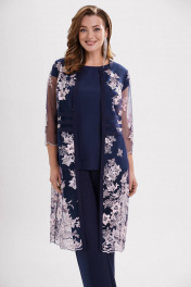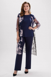 Брючный костюм с кардиганом, прекрасный выбор для вашего образа, который будет сочетать в себе удобство и женственность. Кардиган женский, полуприлегающего силуэта, из отделочного материала - гипюр. На уровне линии талии настрочены три декоративных полоски из основного материала. Верхняя часть переда с рельефным швом, выходящим из проймы и идущим до верхней отделочной детали из основного материала. Верхняя и нижняя часть спинки с талиевыми вытачками Борт без застёжки, обработан узкой планкой из основного материала. Горловина круглой формы, обработана планкой из основного материала. Рукава втачные, одношовные, длиной 3/4. Низ рукава обработан узкой притачной манжетой из основного материала. Низ кардигана фестонный. Блуза женская прямого силуэта с цельнокроенным коротким рукавом. Горловина формы “лодочка” обтачная. По спинке от горловины обработан разрез с застежкой на навесную петлю и пуговицу. Брюки женские прямые со “стрелками”. В боковых швах обработаны карманы с наклонной линией входа. На задних половинках брюк стачаны талиевые вытачки. Верхний край брюк обработан притачным поясом, по спинке пояс на резинке. Спереди брюки застегиваются на тесьму-молнию и петлю и пуговицу на поясе. "48 размер Кардиган Длина кардигана по середине спинки - 103,0 см (±3,0 см), Ширина кардигана на уровне глубины проймы – 50,0 см (±1,0 см), Ширина кардигана на уровне линии талии – 45,0 см (±1,0 см), Ширина кардигана на уровне линии бедра – 56,0 см (±1,0 см), Длина рукава - 49,0 см (±1,0 см), Ширина рукава вверху - 19,5 см (±0,5 см), Ширина рукава внизу - 15,0 см (±0,5 см), Длина плеча - 11,7 см. (±0,1 см). Брюки Длина брюк по боковому шву с поясом - 104,0 см (±3,0 см), Высота пояса - 4,0 см, Ширина брюк на уровне линии талии -39,0 см (±1,0 см), Ширина брюк на уровне линии талии (пояс в растянутом виде) - 43,0 см (±1,0 см), Ширина брюк на уровне линии бедер - 52,0 см (±1,0 см), Ширина брюк по низу - 22,0 см (±0,5 см). Блузка Длина блузки по середине спинки - 65,0 см (±1,0 см), Ширина блузы на уровне глубины проймы – 51,0 см (±1,0 см), Ширина блузы на уровне линии талии – 48,0 см (±1,0 см), Ширина блузы на уровне линии бедра – 54,0 см (±1,0 см), Длина плеча - 16,0 см (±0,5 см). 50 размер Кардиган Длина кардигана по середине спинки - 103,0 см (±3,0 см), Ширина кардигана на уровне глубины проймы – 52,0 см (±1,0 см), Ширина кардигана на уровне линии талии – 47,0 см (±1,0 см), Ширина кардигана на уровне линии бедра – 58,0 см (±1,0 см), Длина рукава - 49,0 см (±1,0 см), Ширина рукава вверху - 20,0 см (±0,5 см), Ширина рукава внизу - 15,0 см (±0,5 см), Длина плеча - 11,7 см. (±0,1 см). Брюки Длина брюк по боковому шву с поясом - 104,0 см (±3,0 см), Высота пояса - 4,0 см, Ширина брюк на уровне линии талии - 41,0 см (±1,0 см), Ширина брюк на уровне линии талии (пояс в растянутом виде) - 45,0 см (±1,0 см), Ширина брюк на уровне линии бедер - 54,0 см (±1,0 см), Ширина брюк по низу - 22,0 см (±0,5 см). Блузка Длина блузки по середине спинки - 65,0 см (±1,0 см), Ширина блузы на уровне глубины проймы – 53,0 см (±1,0 см), Ширина блузы на уровне линии талии – 50,0 см (±1,0 см), Ширина блузы на уровне линии бедра – 56,0 см (±1,0 см), Длина плеча - 16,2 см (±0,5 см). 52 размер Кардиган Длина кардигана по середине спинки - 105,0 см (±3,0 см), Ширина кардигана на уровне глубины проймы – 54,0 см (±1,0 см), Ширина кардигана на уровне линии талии – 49,0 см (±1,0 см), Ширина кардигана на уровне линии бедра – 60,0 см (±1,0 см), Длина рукава - 49,0 см (±1,0 см), Ширина рукава вверху - 20,5 см (±0,5 см), Ширина рукава внизу - 15,0 см (