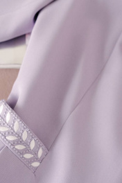 Элегантный костюм с элементами вышивки. В этом костюме вы будете выглядеть женственно и изысканно, демонстрируя наличие отменного вкуса и индивидуального стиля. Костюм женский из костюмно плательной-ткани, состоит из жакета полуприлегающего силуэта на подкладке и юбки-карандаш. Жакет женский полуприлегающего силуэта с художественной вышивкой по низу рукава, горловине и центру переда, с центральной застежкой на тесьму-молнию. Перед жакета с рельефными швами выходящими из плечевого шва до линии входа в карман. Карман с листочкой, на которой расположена вышивка. В шве кармана две пары складок. Спинка с двумя рельефными швами, выходящими из плеча до низа и средним швом. Горловина круглой формы, обтачная. Рукава втачные, двухшовные, длиной ¾. Юбка женская на подкладке со шлицей, с талиевыми вытачками по переду и спинке и застежкой на потайную тесьму-молнию, расположенную в среднем шве задних половинок. Верхний край юбки обработан притачным поясом, застегивающимся на 1 петлю и пуговицу. "44 размер Жакет Длина жакета по среднему шву спинки – 59,0 см (±2,0 см), Ширина жакета на уровне глубины проймы – 46,5 см (±1,0 см), Ширина жакета на уровне линии талии – 40,5 см (±1,0 см), Ширина жакета на уровне линии бедра – 52,0 см (±1,0 см), Длина рукава жакета – 47,0 см (±1,0 см), Ширина рукава жакета вверху – 16,5 см (±1,0 см), Ширина рукава внизу - 13,5 см (±0,5 см), Длина плеча жакета – 10,0 см (±0,5 см). Юбка Длина юбки по среднему шву спинки с поясом – 71,0 см (±3,0 см), Высота пояса - 3,0 см, Ширина юбки на уровне линии талии – 36,0 см (±1,0 см), Ширина юбки на уровне линии бедер – 48,5 см (±1,0 см), Ширина юбки на уровне линии низа – 44,0 см (±1,0 см). 46 размер Жакет Длина жакета по среднему шву спинки – 59,0 см (±2,0 см), Ширина жакета на уровне глубины проймы – 48,5 см (±1,0 см), Ширина жакета на уровне линии талии – 42,5 см (±1,0 см), Ширина жакета на уровне линии бедра – 54,0 см (±1,0 см), Длина рукава жакета – 47,0 см (±1,0 см), Ширина рукава жакета вверху – 17,5 см (±1,0 см), Ширина рукава внизу - 13,5 см (±0,5 см), Длина плеча жакета – 10,0 см (±0,5 см). Юбка Длина юбки по среднему шву спинки с поясом – 71,0 см (±3,0 см), Высота пояса - 3,0 см, Ширина юбки на уровне линии талии – 38,0 см (±1,0 см), Ширина юбки на уровне линии бедер – 50,5 см (±1,0 см), Ширина юбки на уровне линии низа – 46,0 см (±1,0 см). 48 размер Жакет Длина жакета по среднему шву спинки – 61,0 см (±2,0 см), Ширина жакета на уровне глубины проймы – 51,0 см (±1,0 см), Ширина жакета на уровне линии талии – 44,5 см (±1,0 см), Ширина жакета на уровне линии бедра – 56,0 см (±1,0 см), Длина рукава жакета – 47,0 см (±1,0 см), Ширина рукава жакета вверху – 18,5 см (±1,0 см), Ширина рукава внизу - 14,5 см (±0,5 см), Длина плеча жакета – 10,0 см (±0,5 см). Юбка Длина юбки по среднему шву спинки с поясом – 71,0 см (±3,0 см), Высота пояса - 3,0 см, Ширина юбки на уровне линии талии – 41,0 см (±1,0 см), Ширина юбки на уровне линии бедер – 52,5 см (±1,0 см), Ширина юбки на уровне линии низа – 50,0 см (±1,0 см). 50 размер Жакет Длина жакета по среднему шву спинки – 61,0 см (±2,0 см), Ширина жакета на уровне глубины проймы – 53,0 см (±1,0 см), Ширина жакета на уровне линии талии – 46,5 см (±1,0 см), Ширина жакета на уровне линии бедра – 58,0 см (±1,0 см), Длина рукава жакета – 47,0 см (±1,0 см), Ширина рукава жакета вверху – 19,5 см (±1,0 см), Ширина рукава внизу - 14,5 см (±0,5 см), Длина плеча жакета – 10,0 см (±0,5 см). Юбка Длина юбки по среднему шву спинки с поясом –71,0 см (±3,0 см), Высота пояса - 3,0 см, Ширина юбки на уровне лини