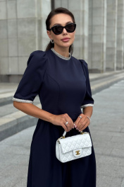 Создайте неповторимый образ с платьем, украшенным сверкающим стеклярусом! Это идеальный выбор для любого праздничного мероприятия. Оно подчеркнет вашу элегантность и женственность. В этом платье вы будете звездой вечера! Платье женское полуприлегающего силуэта, отрезное по линии талии с притачным поясом, выполнено из костюмно-плательной ткани ""лащенка"". Перед и спинка на трикотажной, отлетной по низу, подкладке. Горловина, низа рукавов декорированы отделочной тесьмой, что придает платью нарядный вид. Верхняя часть переда с рельефными швами, проходящими через центр груди и идущими от пройм вниз до пояса. Верхняя часть спинки с рельефными швами, идущими от пройм вниз до пояса. Верхняя, нижняя части спинки и пояс - со средним швом, в верхней части которого расположена застежка на потайную тесьму - ""молнию"". Нижняя часть переда и спинки по шву талии собрана на сборку. В боковых швах нижних частей переда и спинки обработаны карманы. Горловина оформлена воротником – стойкой с отделочной тесьмой. Воротник - стойка застегивается на спинке встык на 1 металлический крючок. Рукава втачные, одношовные, короткие, обтачные по низу с отделочной тесьмой. Рукава по окату со сборкой, без подкладки. Состав изделия: полиэстер – 68 %, вискоза - 32%, спандекс - 3%. "42 размер Длина по среднему шву спинки - 112,0 см (±3,0 см), Длина по среднему шву спинки до талии - 36,0 см (±0,5см), Ширина на уровне глубины проймы - 46,0 см (±1,0 см), Ширина на уровне линии талии - 37,0 см (±1,0 см), Ширина на уровне линии бедер - 65,0 см (±1,0 см), Длина рукава - 35,5 см (±1,0 см), Ширина рукава вверху - 17,5 см (±0,5 см), Ширина рукава по низу - 16,0 см (±0,5 см), Длина плеча - 10,0 см (±0,5 см). 44 размер Длина по среднему шву спинки - 112,0 см (±3,0 см), Длина по среднему шву спинки до талии - 36,0 см (±0,5см), Ширина на уровне глубины проймы - 48,0 см (±1,0 см), Ширина на уровне линии талии - 39,0 см (±1,0 см), Ширина на уровне линии бедер - 67,0 см (±1,0 см), Длина рукава - 35,5 см (±1,0 см), Ширина рукава вверху - 18,5 см (±0,5 см), Ширина рукава по низу - 17,0 см (±0,5 см), Длина плеча - 10,0 см (±0,5 см). 46 размер Длина по среднему шву спинки - 112,0 см (±3,0 см), Длина по среднему шву спинки до талии - 36,0 см (±0,5см), Ширина на уровне глубины проймы - 50,0 см (±1,0 см), Ширина на уровне линии талии - 41,0 см (±1,0 см), Ширина на уровне линии бедер - 69,0 см (±1,0 см), Длина рукава - 35,5 см (±1,0 см), Ширина рукава вверху - 19,5 см (±0,5 см), Ширина рукава по низу - 18,0 см (±0,5 см), Длина плеча - 10,0 см (±0,5 см). 48 размер Длина по среднему шву спинки - 113,5 см (±3,0 см), Длина по среднему шву спинки до талии - 36,5 см (±0,5см), Ширина на уровне глубины проймы - 52,0 см (±1,0 см), Ширина на уровне линии талии - 44,0 см (±1,0 см), Ширина на уровне линии бедер - 71,0 см (±1,0 см), Длина рукава - 36,5 см (±1,0 см), Ширина рукава вверху - 20,0 см (±0,5 см), Ширина рукава по низу - 18,0 см (±0,5 см), Длина плеча - 10,5 см (±0,5 см). 50 размер Длина по среднему шву спинки - 113,5 см (±3,0 см), Длина по среднему шву спинки до талии - 36,5 см (±0,5см), Ширина на уровне глубины проймы - 54,0 см (±1,0 см), Ширина на уровне линии талии - 46,0 см (±1,0 см), Ширина на уровне линии бедер - 73,0 см (±1,0 см), Длина рукава - 36,5 см (±1,0 см), Ширина рукава вверху - 21,0 см (±0,5 см), Ширина рукава по низу - 19,0 см (±0,5 см), Длина плеча - 10,5 см (±0,5 см). 52 размер Длина по среднему шву спинки - 113,5 см (±3,0 см), Длина по среднему шву спинки до талии - 36,5 см (±0,5см), Ширина на уровне глубины проймы - 56,0 см (±1,0 см), Ширина на уровне линии талии - 48,0 см (±1,0 см), Ширина на уровне лин