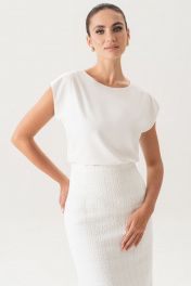 Самая универсальная вещь в гардеробе женщины – это белая блузка. Белая блузка поможет создать множество разных образов и будет элементом вашего базового гардероба, она прекрасно подходит под деловые костюмы, а так же повседневные образы. Блузка женская прямого силуэта, выполнена из ткани креп, может быть как нарядной, так и для повседневной носки. Перед с нагрудными вытачками, идущими из боковых швов. Спинка в верхней части с окантованным разрезом, застегивающимся на 1 навесную петлю и 1 пуговицу. Горловина округлой формы. Рукава втачные, одношовные, короткие. Эта блузка идеально дополнит такие костюмы как 23-240-1 и 23-240-2, 24-335-1 а так же любые другие костюмы и комплекты. Состав: Полиэстер 91%, спандекс 9% Средняя длина блузки по середине спинки 56,0 см, (±2,0 см); Средняя длина рукава короткого - 18,0 см (±1,5 см); "46:Длина посередине спинки - 55,0 см (±1,5 см), Длина рукава - 19,0 см (±1,0 см), Ширина на уровне глубины проймы - 50,5 см (±1,0 см), Ширина на уровне линии талии - 52,5 см (±1,0 см), Ширина по низу блузки - 54,0 см (±1,0 см), Ширина рукава - 17,5 (±1,0 см), длина плеча - 10,2 см (±0,5см) 48:Длина посередине спинки - 55,0 см (±1,5 см), Длина рукава - 19,0 см (±1,0 см), Ширина на уровне глубины проймы - 52,5 см (±1,0 см), Ширина на уровне линии талии - 54,5 см (±1,0 см), Ширина по низу блузки - 56,0 см (±1,0 см), Ширина рукава - 18,5 (±1,0 см), длина плеча - 10,2 см (±0,5см) 50:Длина посередине спинки - 57,0 см (±1,5 см), Длина рукава - 21,0 см (±1,0 см), Ширина на уровне глубины проймы - 55,0 см (±1,0 см), Ширина на уровне линии талии - 57,5 см (±1,0 см), Ширина по низу блузки - 59,0 см (±1,0 см), Ширина рукава - 19,0 (±1,0 см), длина плеча - 10,4 см (±0,5см) 52:Длина посередине спинки - 57,0 см (±1,5 см), Длина рукава - 21,0 см (±1,0 см), Ширина на уровне глубины проймы - 57,0 см (±1,0 см), Ширина на уровне линии талии - 59,5 см (±1,0 см), Ширина по низу блузки - 61,0 см (±1,0 см), Ширина рукава - 20,0 (±1,0 см), длина плеча - 10,4 см (±0,5см) 54:Длина блузки посередине спинки - 57,0 см (±2,0 см), Длина рукава - 21,0 см (±1,0 см), Ширина рукава - 20,5 см (±1,0 см), Длина плеча - 10,0 см (±0,5 см), Ширина на уровне глубины проймы - 59,0 см (±1,0 см), Ширина на уровне линии талии - 62,0 см (±1,0 см). 56:Длина блузки посередине спинки - 57,0 см (±2,0 см), Длина рукава - 21,0 см (±1,0 см), Ширина рукава - 21,5 см (±1,0 см), Длина плеча - 10,2 см (±0,5 см), Ширина на уровне глубины проймы - 61,0 см (±1,0 см), Ширина на уровне линии талии - 64,0 см (±1,0 см)."