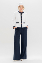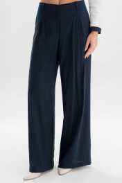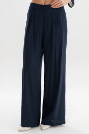 Брюки женские, выполнены из костюмно-плательной ткани лен, для повседневной носки. В размерах 44,46,48,50 прямые от бедра, на обтачном поясе, с 5-ю шлевками, с застежкой на тесьму - «молнию», расположенную в среднем шве передних половинок. Пояс застегивается спереди на 1 пришивной потайной крючок, 1 петлю и 1 потайную пуговицу (размер и цвет фурнитуры может незначительно отличаться от фото). Передние половинки брюк, с односторонними складками, с боковыми наклонными карманами. Складки и карманы частично застрочены от пояса вниз. Задние половинки брюк с двумя парами талиевых вытачек. Брюки без заутюженных стрелок. Брюки женские, выполнены из костюмно-плательной ткани лен, для повседневной носки. В размерах 52,54,56,58 прямые от бедра, с притачным поясом, с резинками на уровне боковых швов, с 5-ю шлевками, с застежкой на тесьму - «молнию», расположенную в среднем шве передних половинок. Пояс застегивается спереди на 1 пришивной потайной крючок, 1 петлю и 1 потайную пуговицу (размер и цвет фурнитуры может незначительно отличаться от фото). Передние половинки брюк, с односторонними складками, с боковыми наклонными карманами. Складки и карманы частично застрочены от пояса вниз. Задние половинки брюк с двумя парами талиевых вытачек. Брюки без заутюженных стрелок.