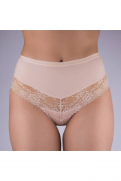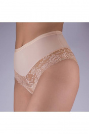 Трусы-слип из эластичного полотна и эластичного кружева. Высокая посадка. По верхнему срезу настрочена эластичная тесьма 15мм.